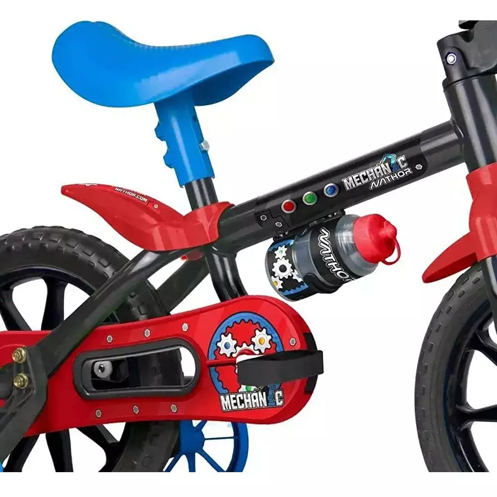 As bicicletas aro 12” Nathor são equipadas com os melhores itens de segurança e conforto para crianças, com o limitador de giro a criança garante mais equilíbrio e segurança ao pedalar. A regulagem de ângulo do guidão e da altura do selim permitem que a postura do ciclista se mantenha correta, além de possibilitar que a bicicleta seja usada por mais tempo – acompanhando o crescimento. O movimento central avançado facilita o pedalar estimulando o aprendizado, também tem uma relação de transmissão que foi desenvolvida para que a velocidade que a criança atinge pedalando seja a mesma de um adulto andando, ou seja os pais conseguem acompanhar a brincadeira com tranquilidade, garantindo ainda mais segurança durante a diversão. Resistência e segurança para começar a pedalar, aproveite!